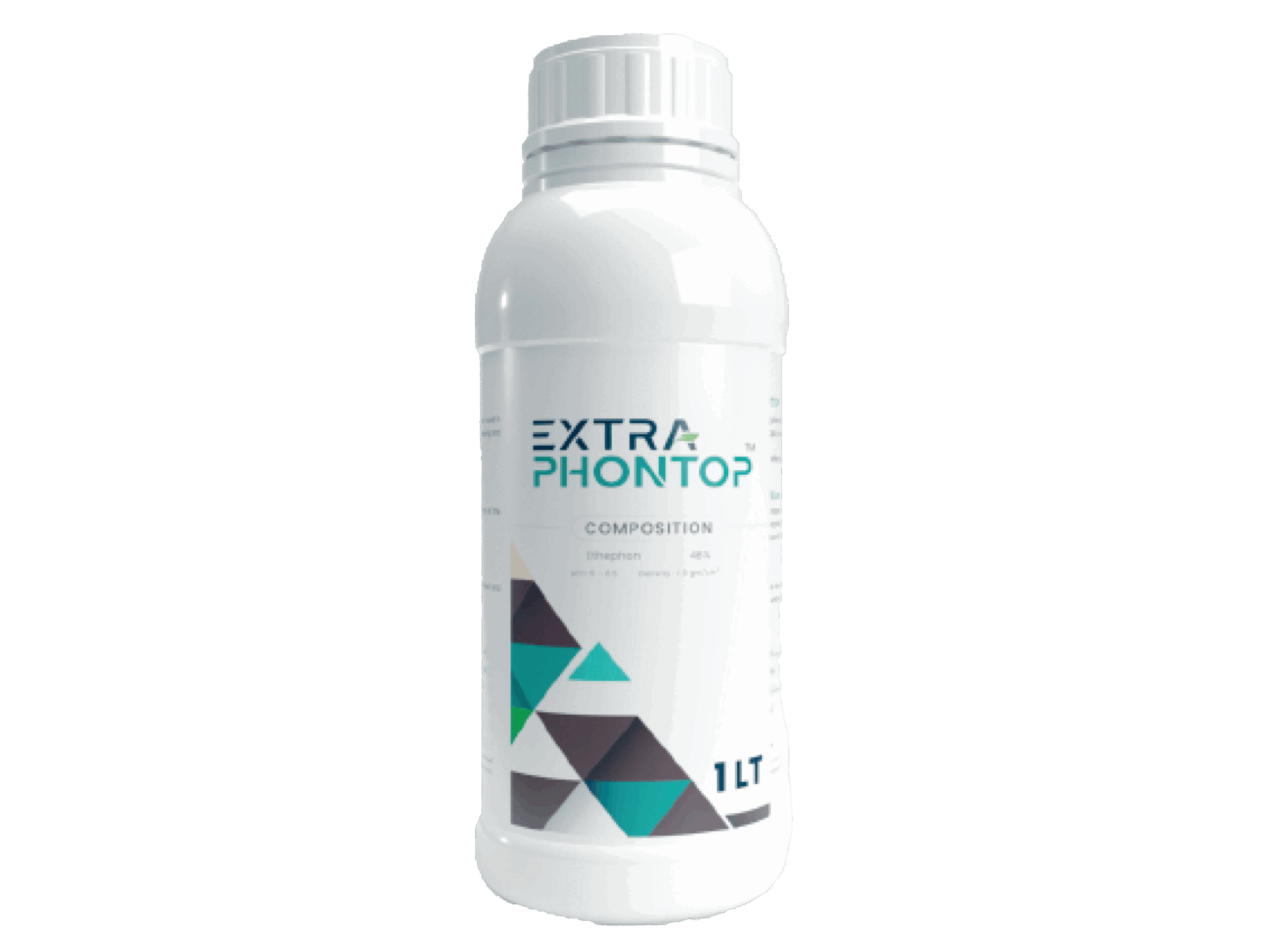 • Has systemic properties, penetrating leaf tissues and moving within the plant. At pH 6.5–6.8, it begins to hydrolyze into ethylene gas, phosphorus ion, and chloride ion. The released ethylene then acts on plant cells, activating enzymatic reactions that drive the plant into the ripening stage.